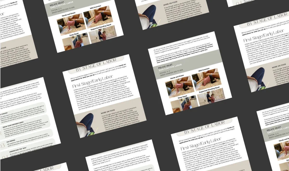 The birth experience this guide will give you has been crafted after seeing hundreds and hundreds of births and birth partners, (accidentally) delivering a few patients, and being a birthing mama 4x myself. This is real knowledge, built from real patients, my own birth partner's experiences (my husband, Kelvin), and thousands of other real stories.