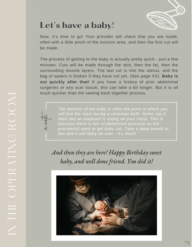 The birth experience this guide will give you has been crafted after seeing hundreds and hundreds of births (in and out of the OR), (accidentally) delivering a few patients, and being a birthing mama 4x myself.